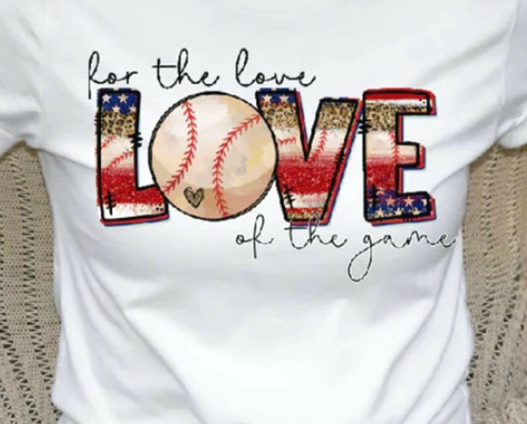 For The Love Of The Game Baseball White Unisex Tshirt With Baseball Bat Print on Back