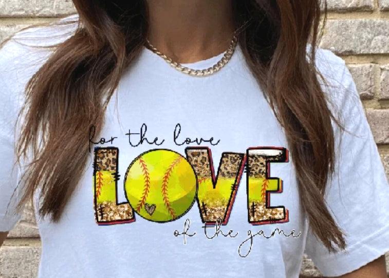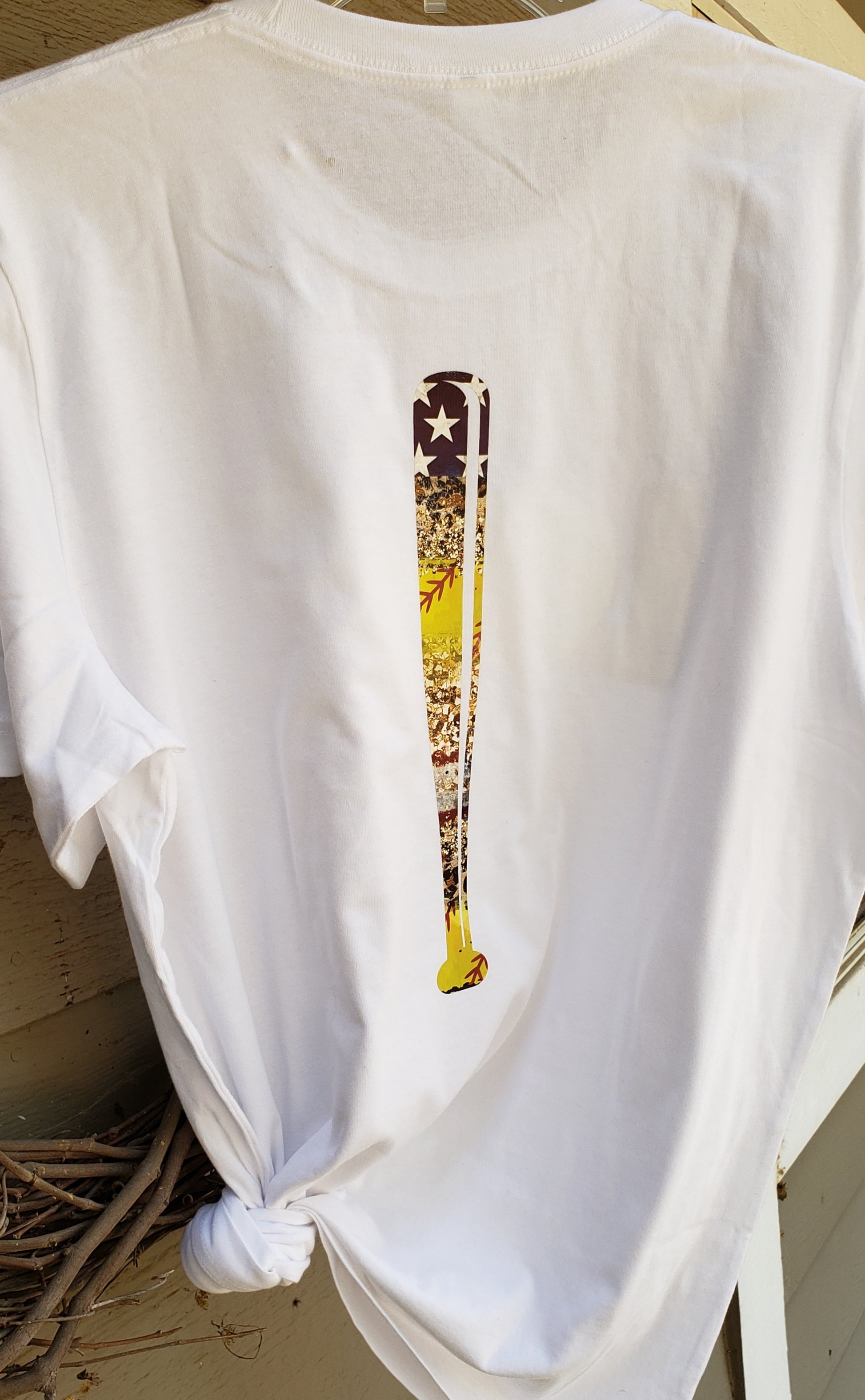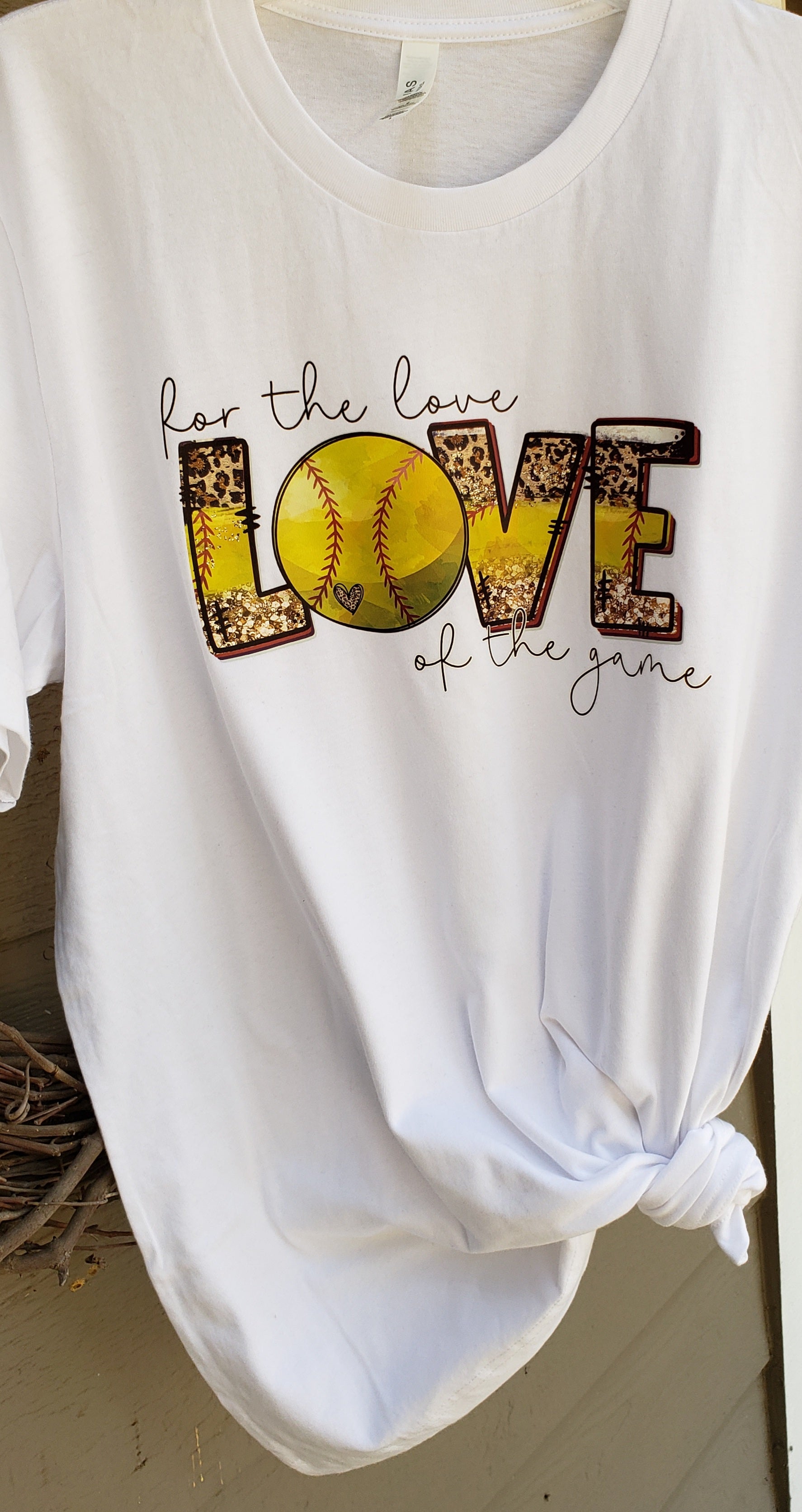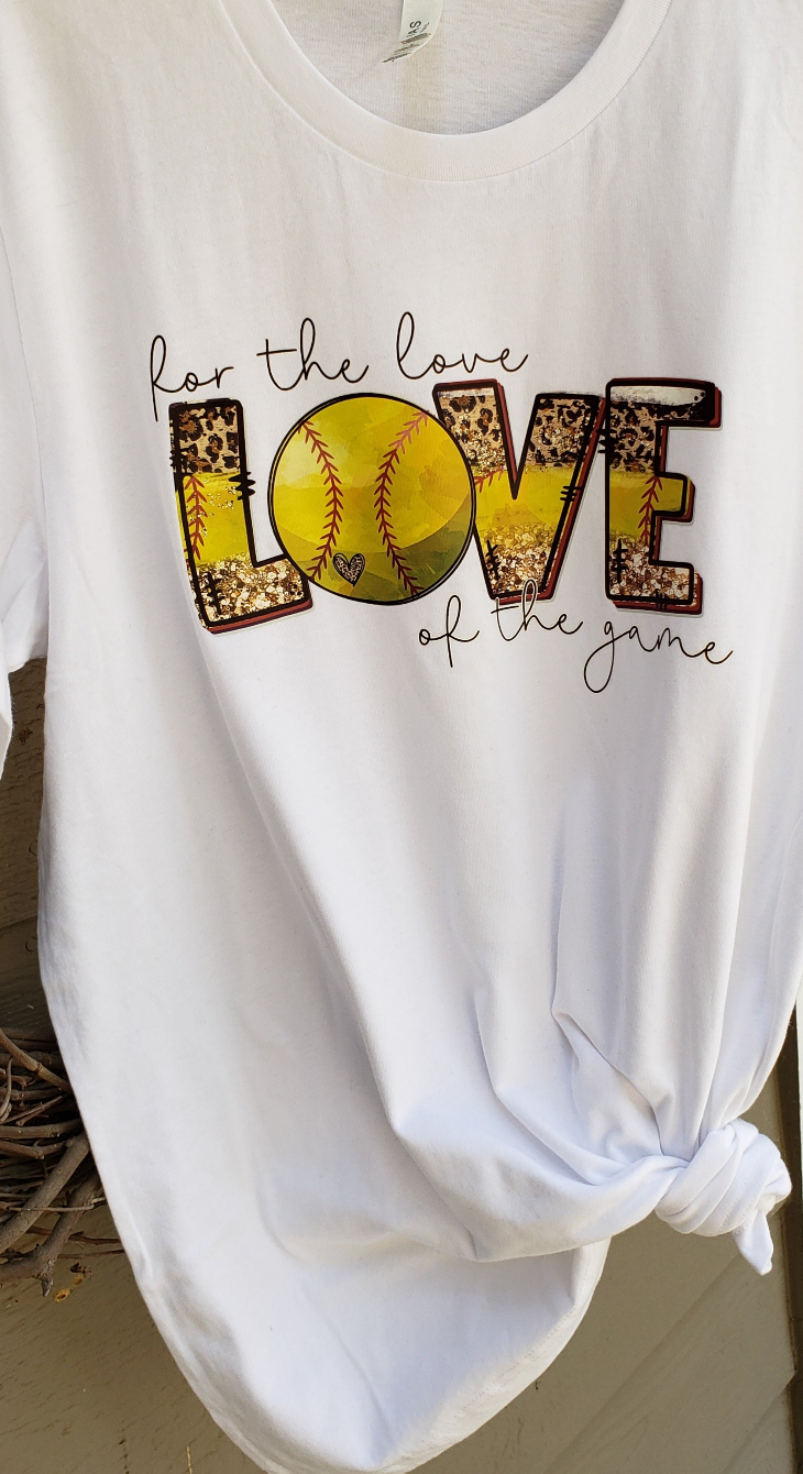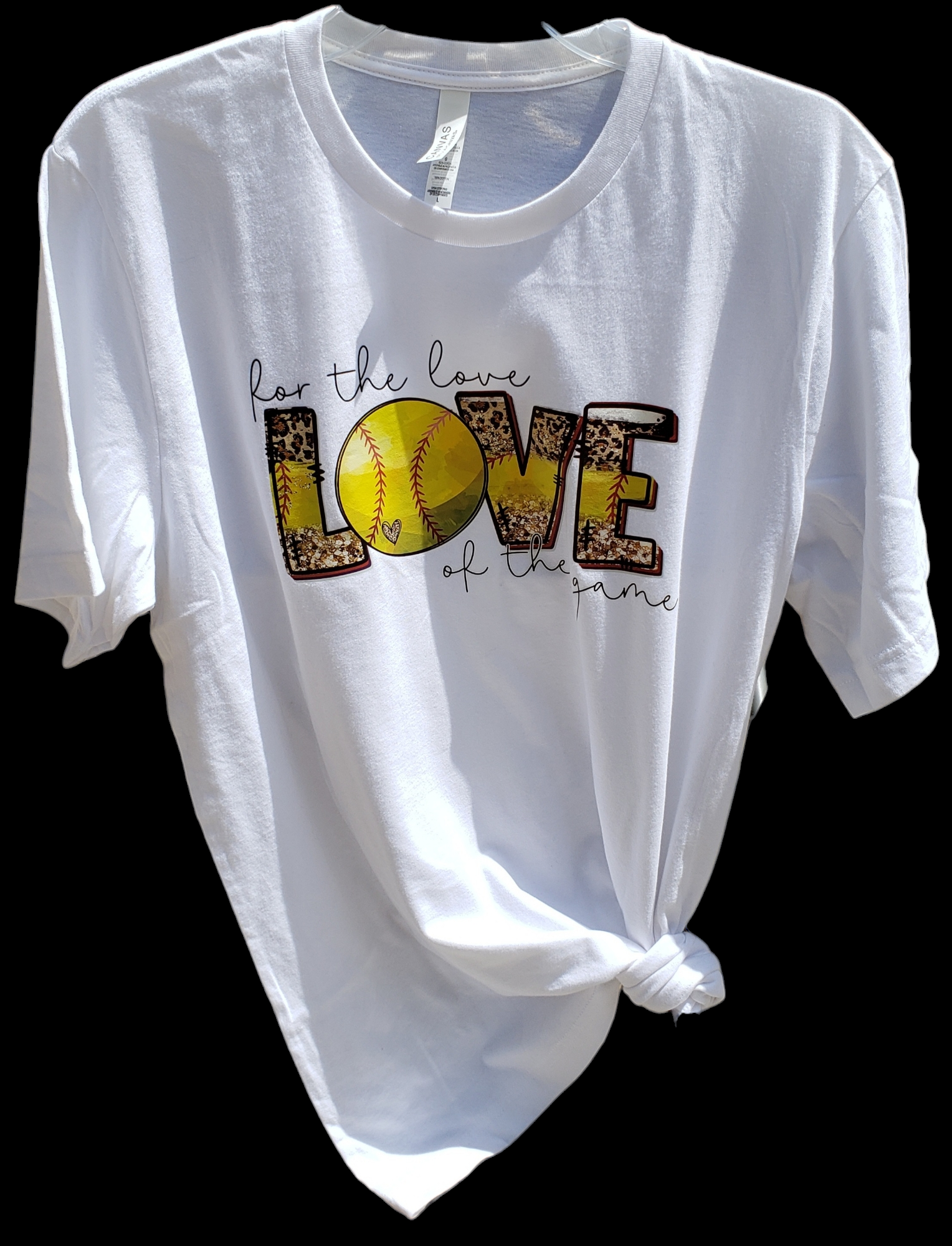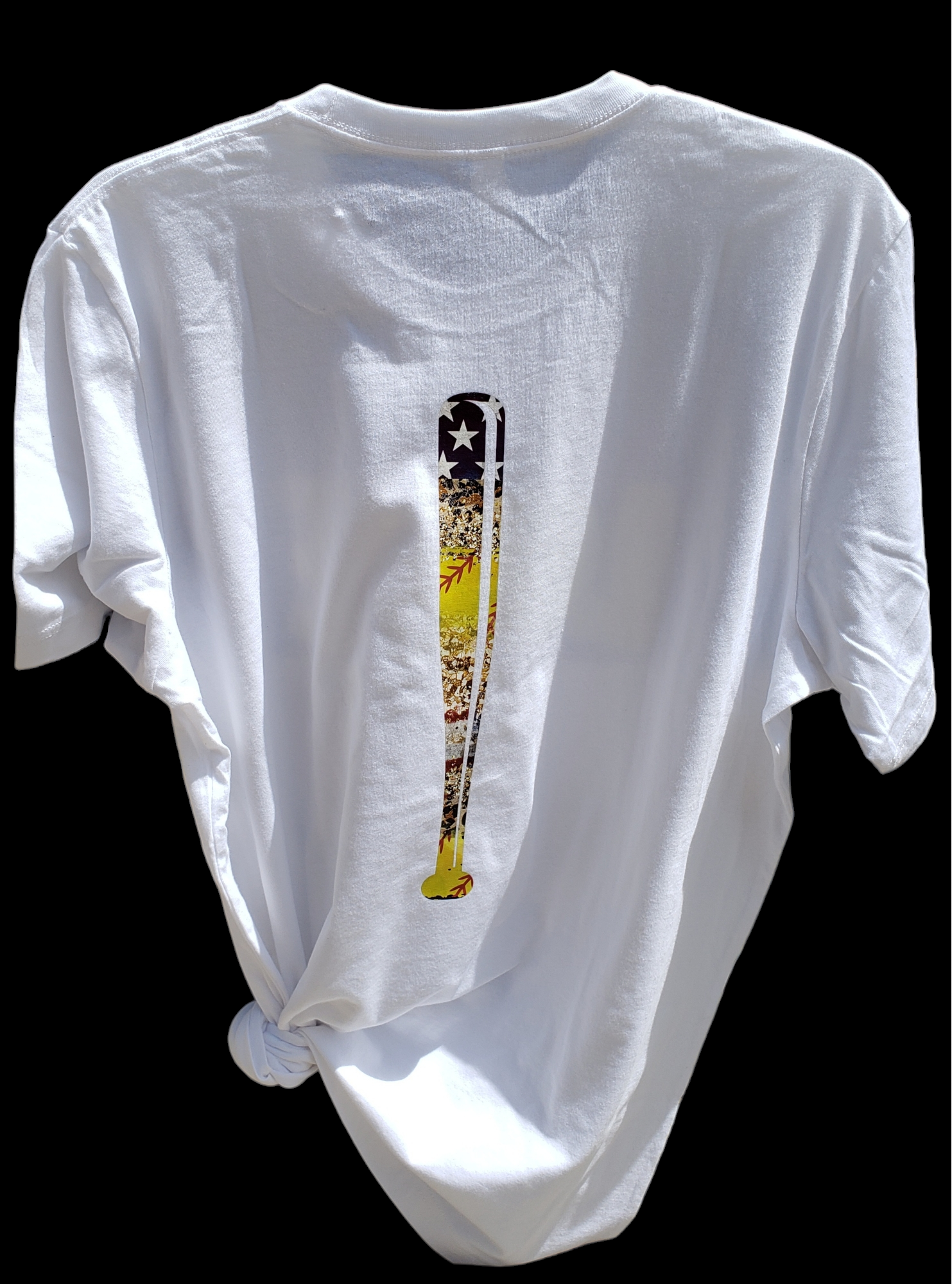 For The Love Of The Game Softball White Unisex Tshirt With Softball Bat Print on Back