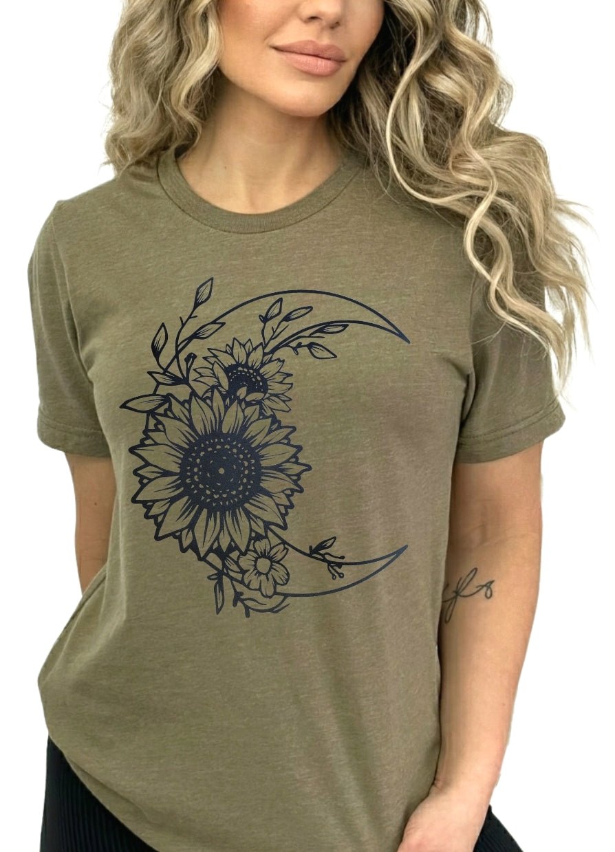 Heather Olive Moon Flowers Tshirt