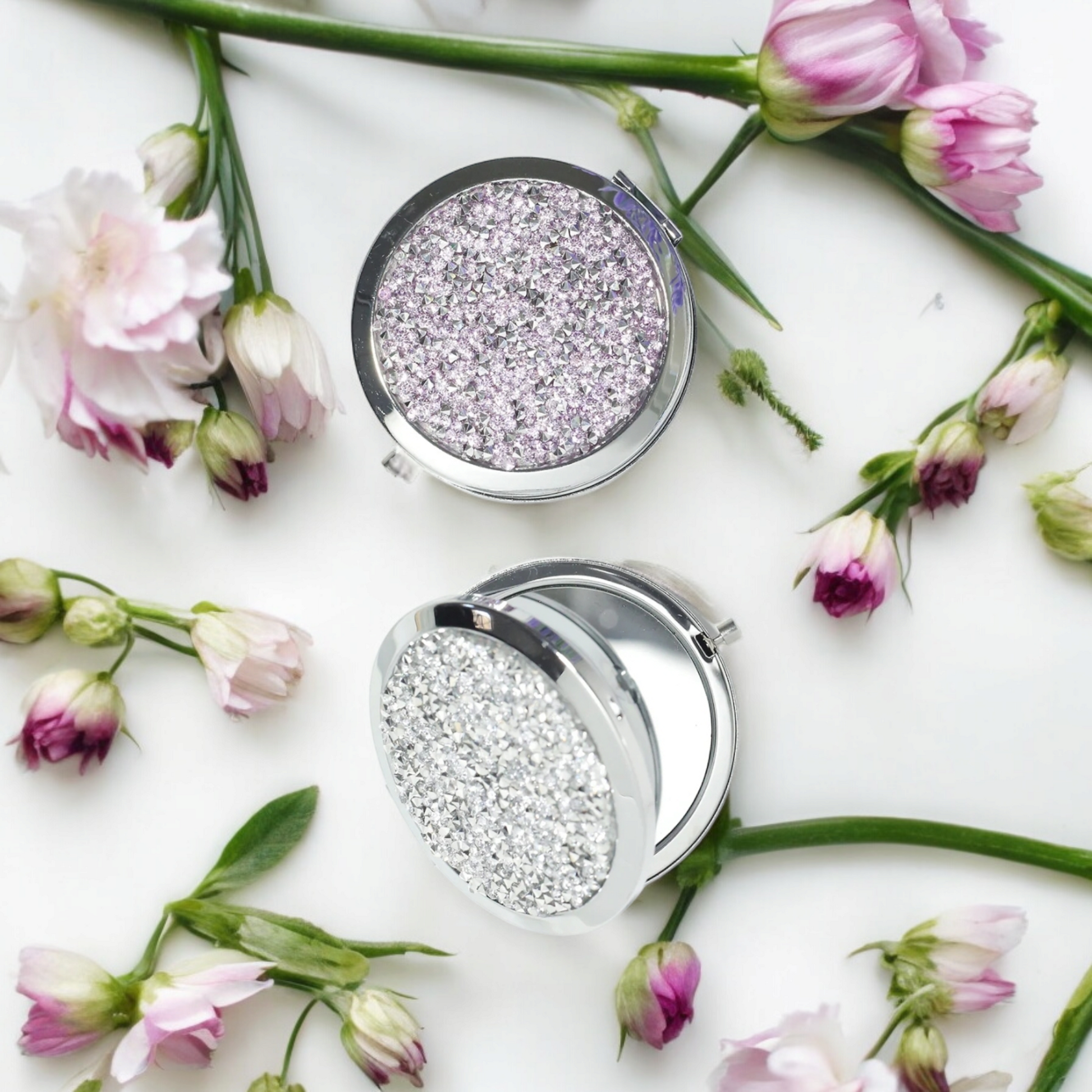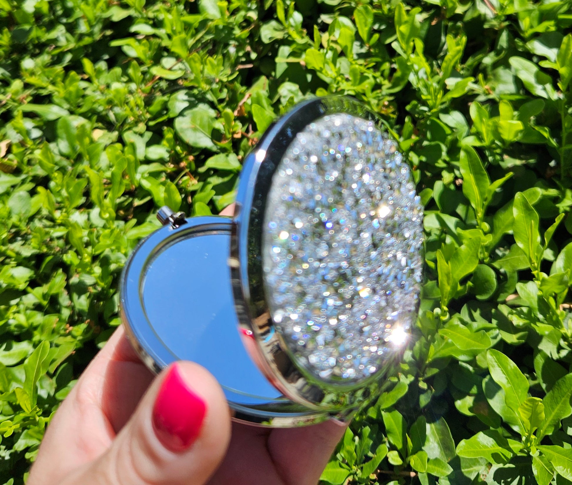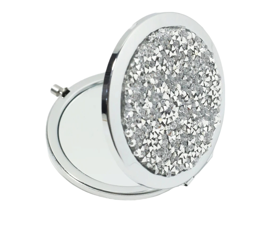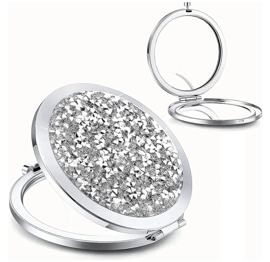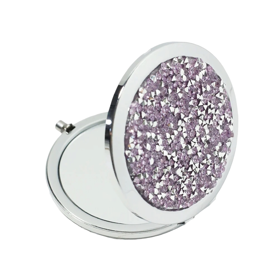 MAGNIFYING DOUBLE-SIDED COMPACT MIRROR - Silver or Purple Mixed Diamond