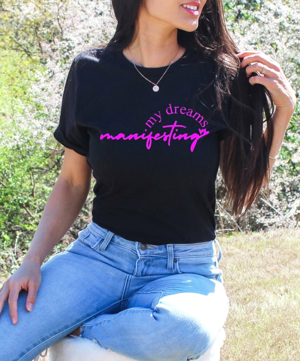 Manifesting My Dreams (Puff Print) Black Tshirt