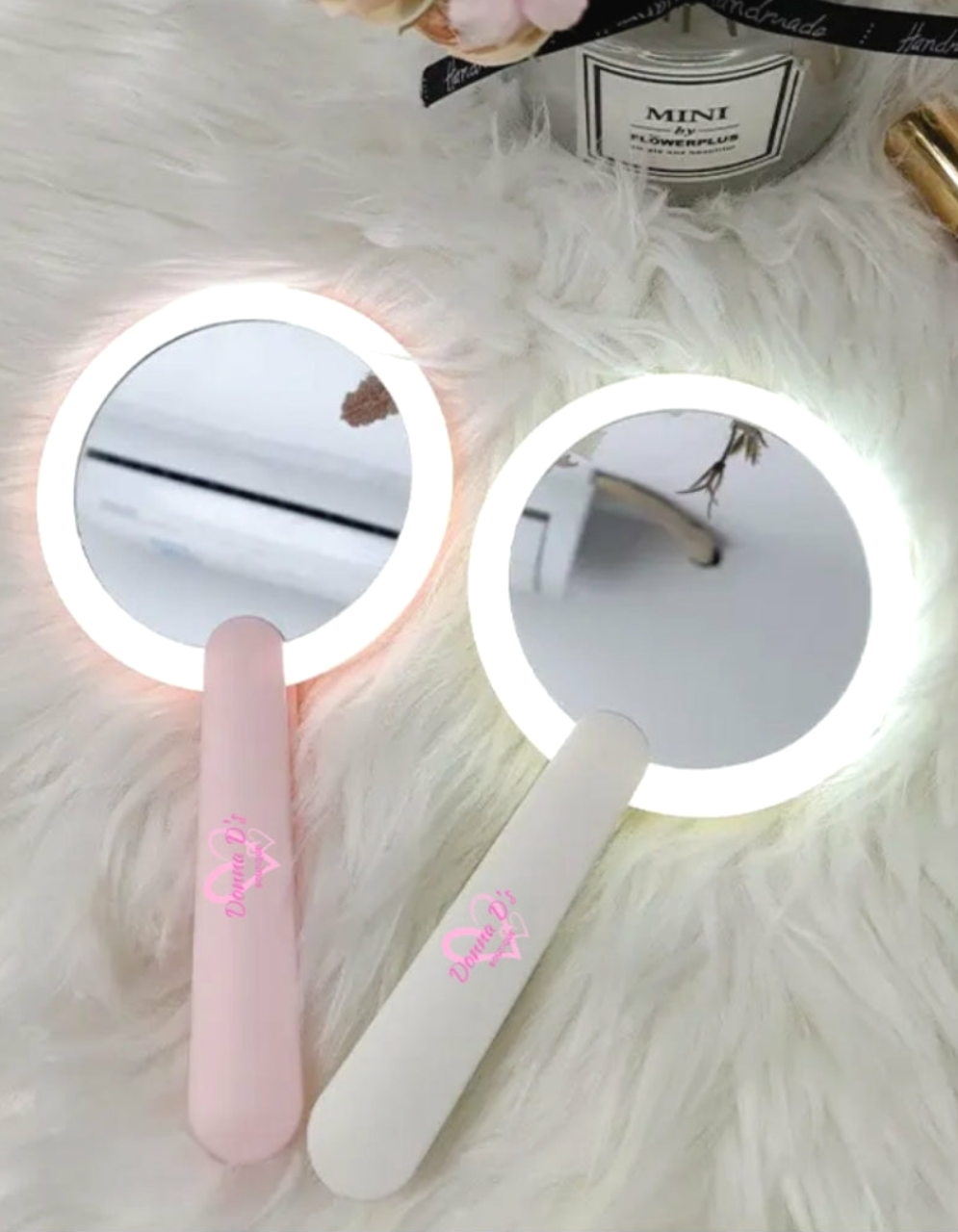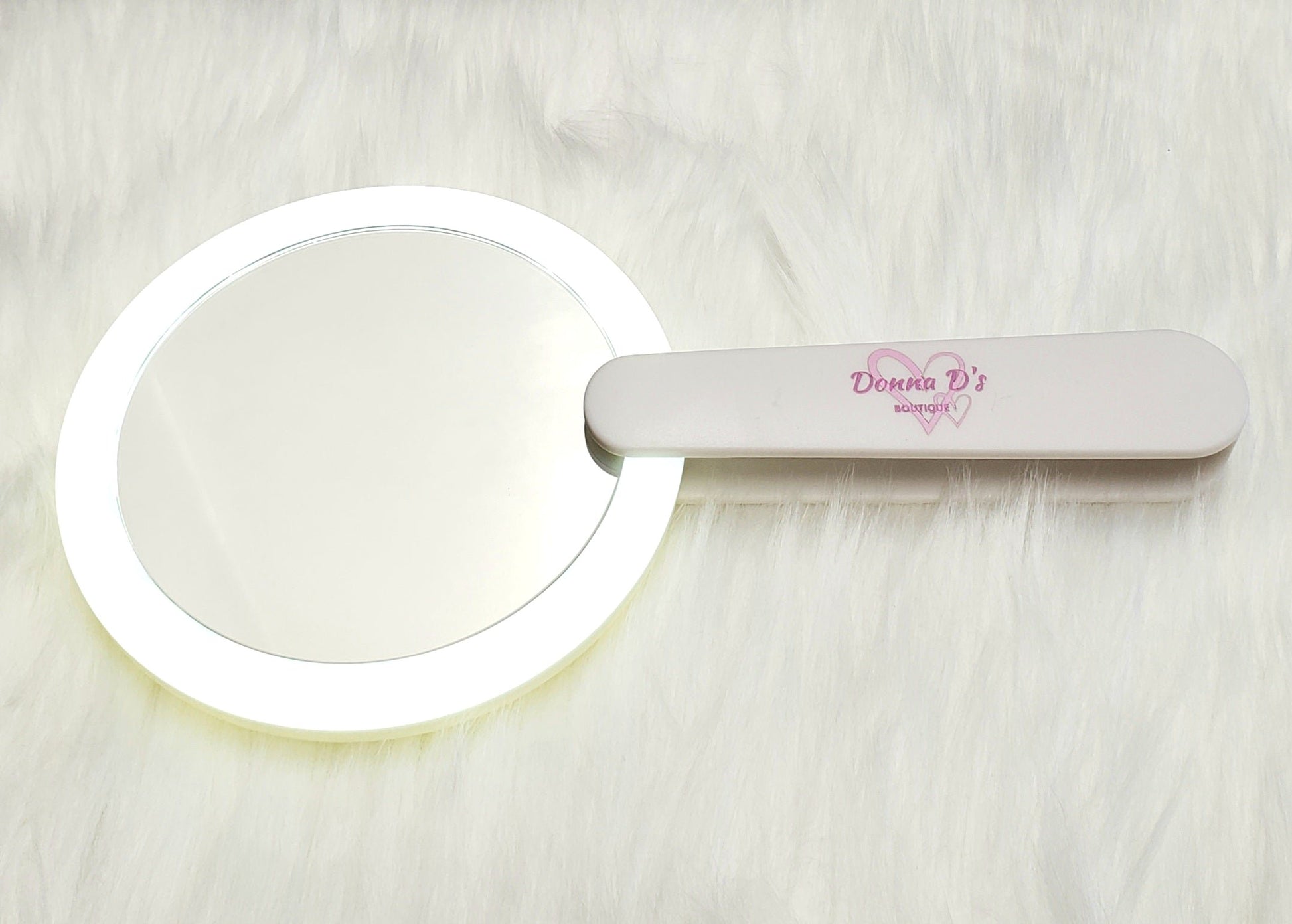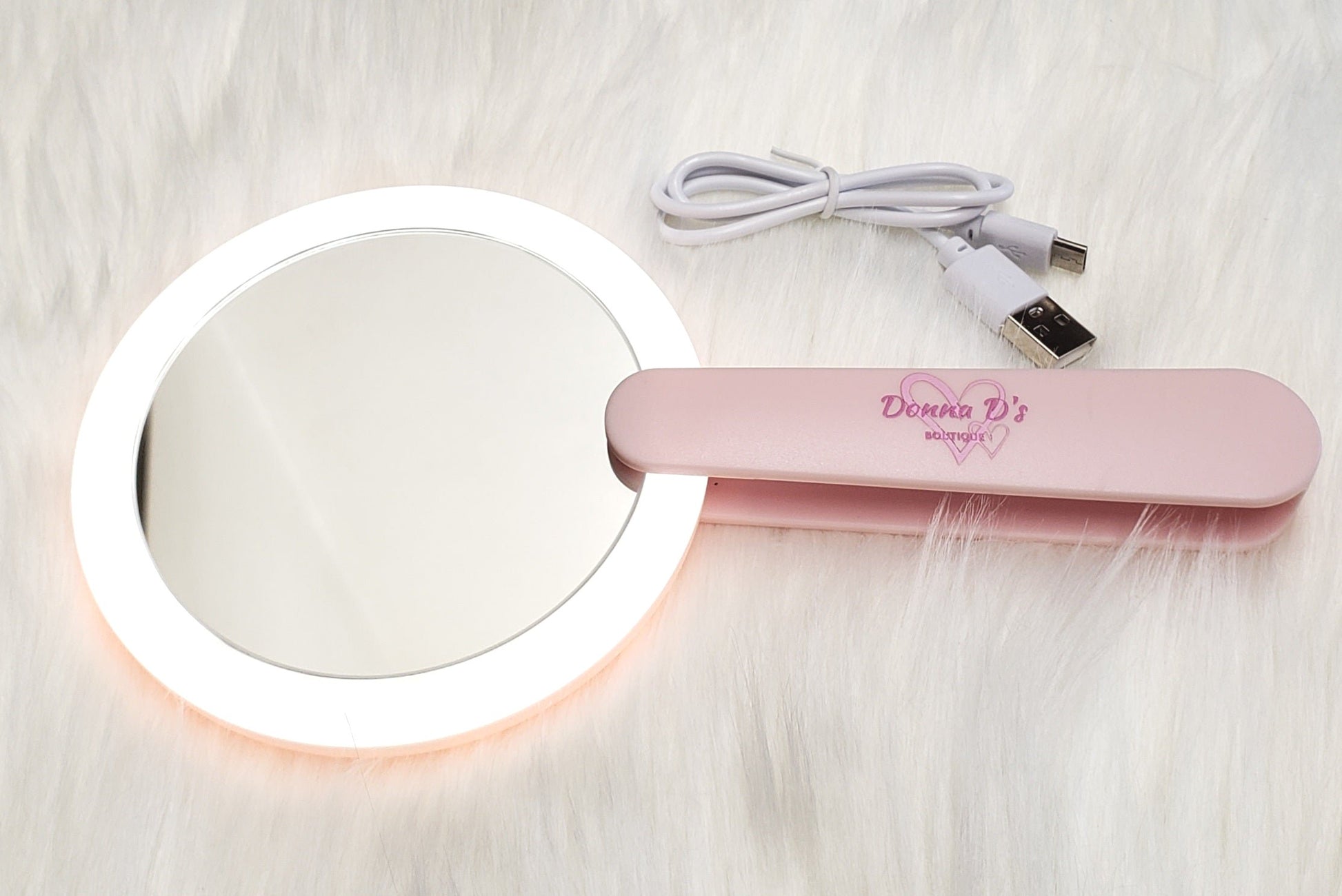 This LED Mirror is the perfect companion for your daily makeup routines. Its 360° rotating handle turns the LED light on and off, and a USB cable is included for easy charging. With its slim and lightweight design, this mirror is perfect for travel and everyday use.