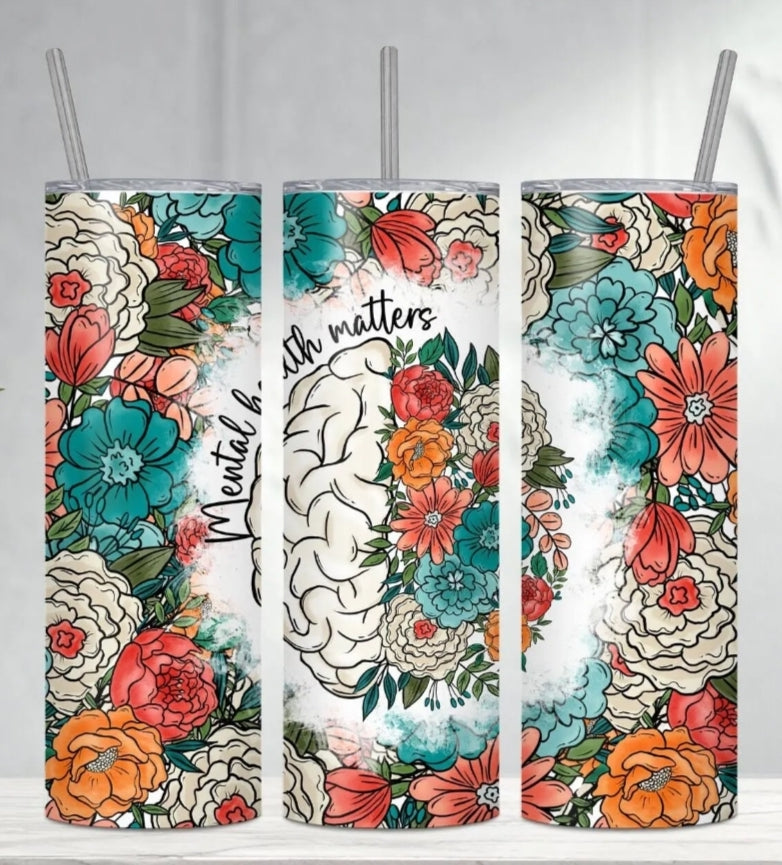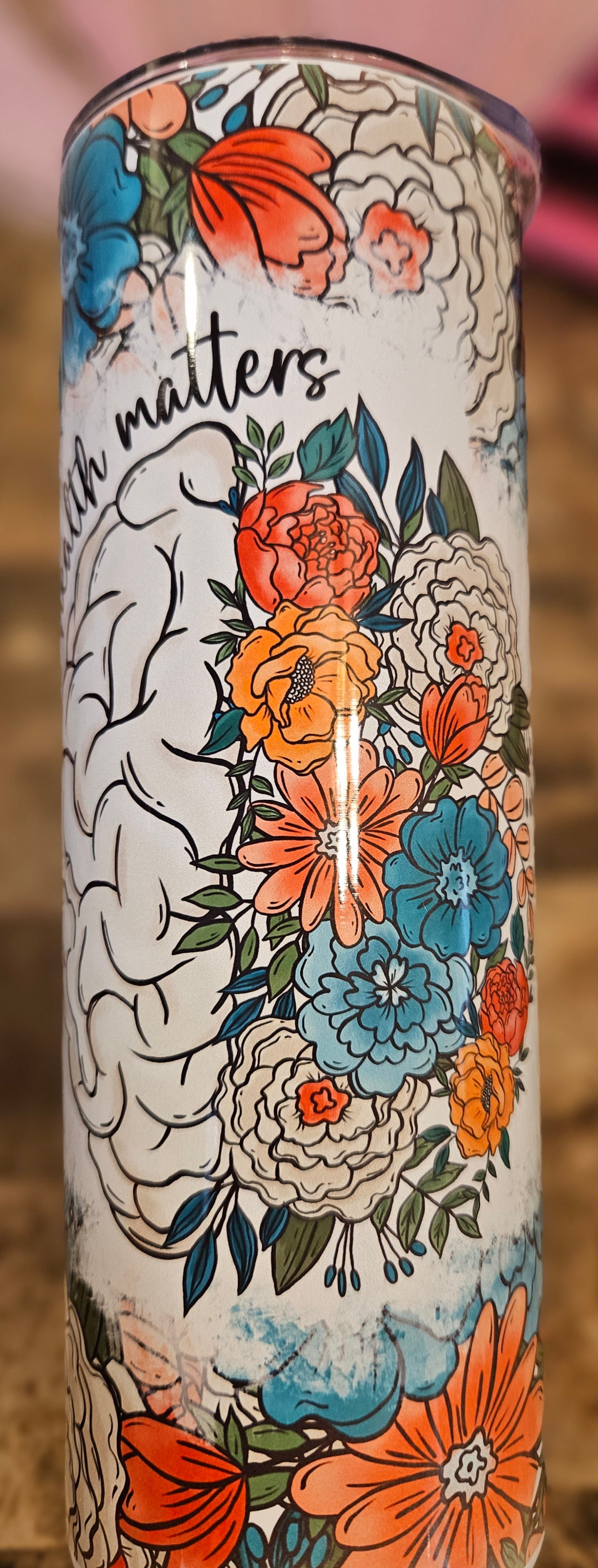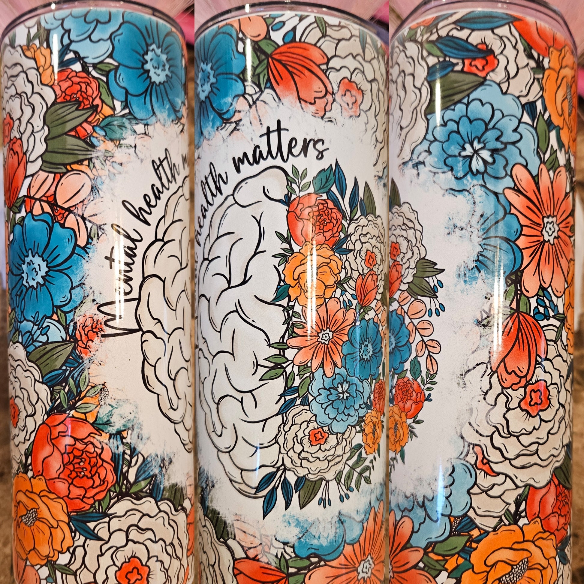 This Mental Health Matters 20oz stainless steel tumbler is perfect for taking your favorite drinks on the go. It's made of durable stainless steel, features a vacuum insulated design to keep your drinks cold or hot for hours, and has an ergonomic shape for easy carrying. Show your support for mental health awareness with this stylish tumbler.