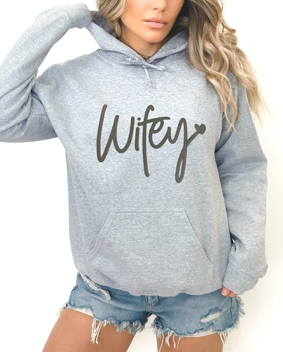 Wifey Puff Print Gray Hoodie