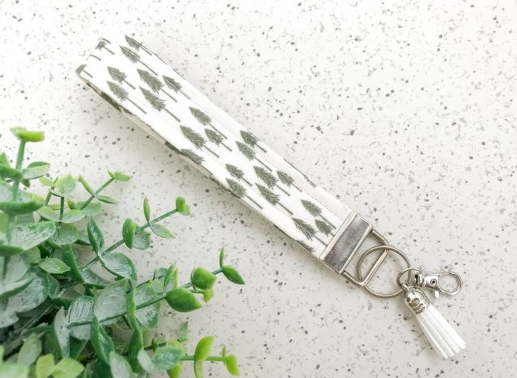 A Key Fob Wristlet is the perfect addition to your keys to help you carry them with ease and find them quickly in your bag. You won't have to worry about juggling your keys, wallet, and phone in your hands any longer, just slip your hand through the wristlet and you're on your way!